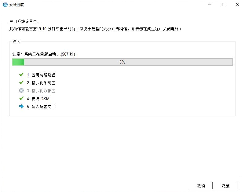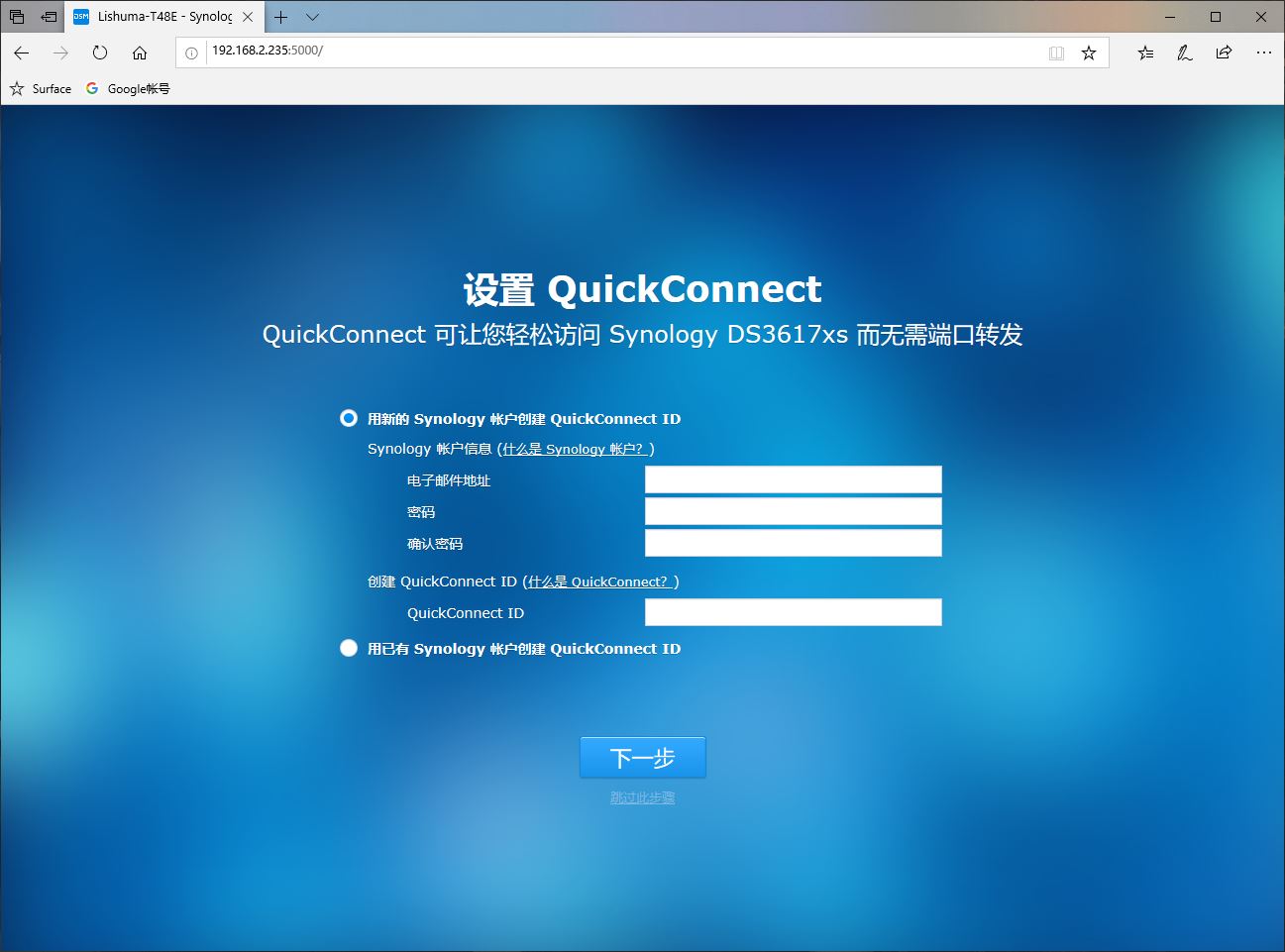 安装完成后,浏览器输入机子对应的 IP 即可看到群辉的设置向导,设置过程就不再赘述了,都非常简洁明了。