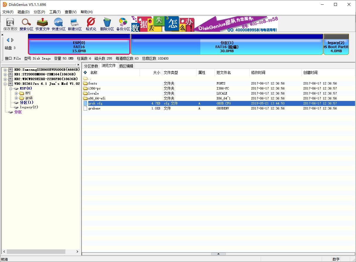 2:DiskGenius,用于挂载镜像和写入引导镜像到 U 盘,也可以用同类软件替代