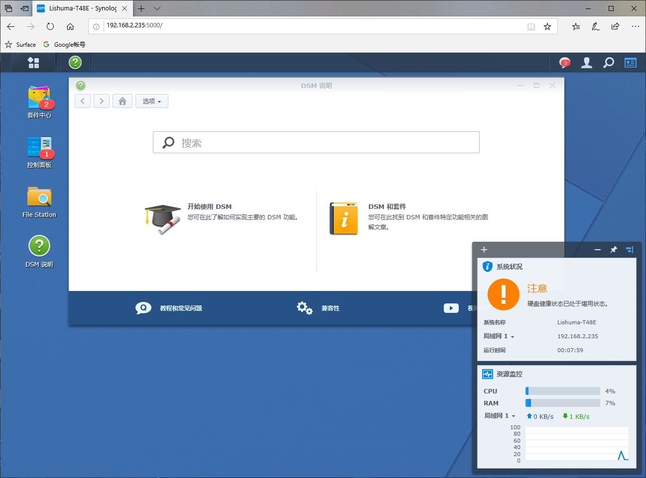 最后设置完毕就能看到群晖界面了,到此系统安装完毕。