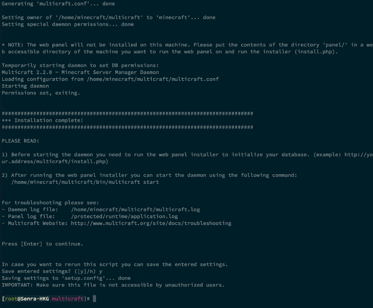 #启动 Daemon /home/minecraft/multicraft/bin/multicraft start