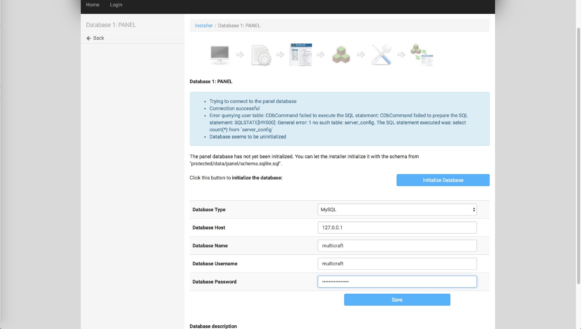 如果是以前安装过,那么这儿只需要点 save,第一次则需要 Initialize Database