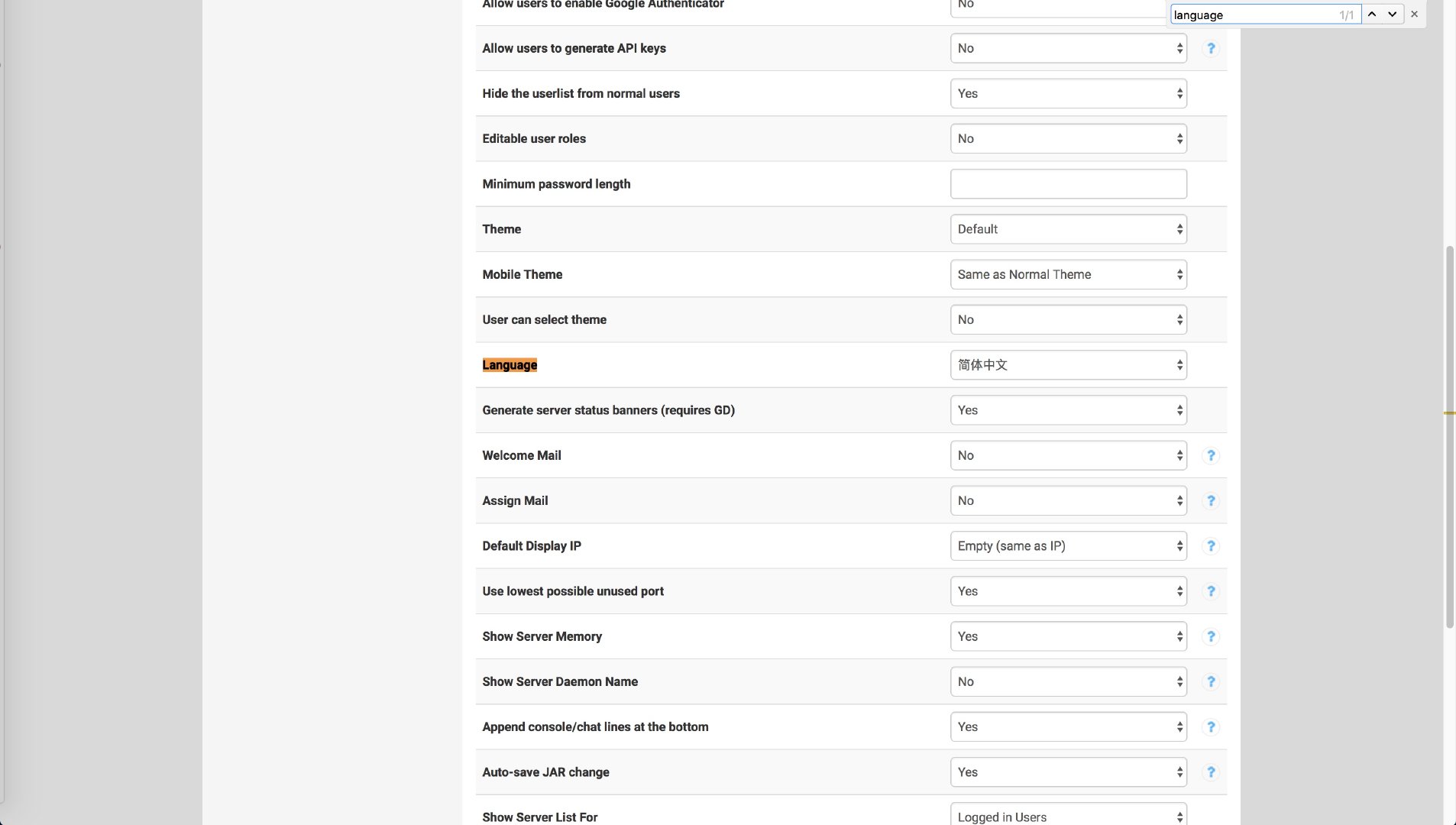 默认面板没有中文,我们可以使用中文的语言包来解决,访问 https://multicraft.org/site/page/translation 来查看下载地址在面板的机器上配置