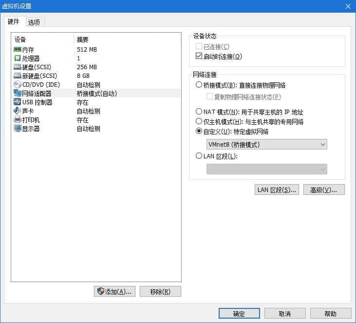 网络驱动器请自行根据自己实际情况设置,下图是我的设置,虚拟机的IP地址和主机在同一个网段,走的主网卡桥接的: