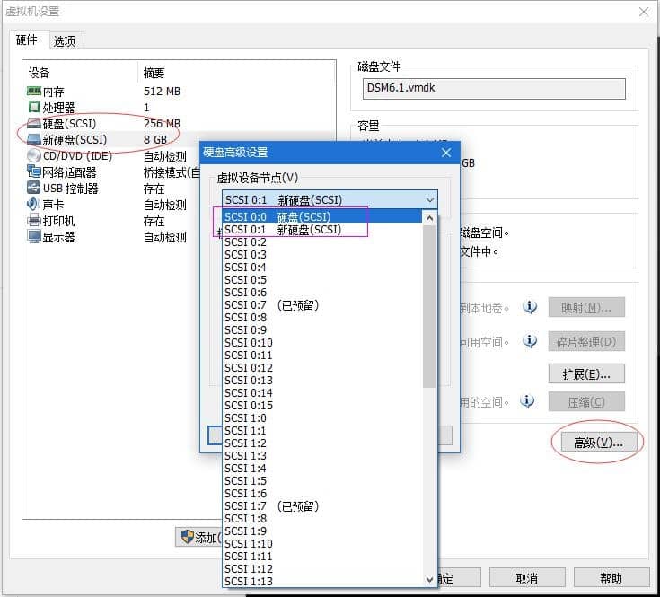 注意:虚拟磁盘要在创建虚拟机的时候先指定,完成后再附加硬盘。如果你是在已创建好的虚拟机上添加的虚拟磁盘,那么要在虚拟机启动时的BIOS里面修改设置,变更这2个硬盘的启动顺序。或者你可以修改硬盘的SATA编号。(虚拟机启动时BIOS默认按SATA编号从小到大排列),编辑SATA序号的方法如下图所示: