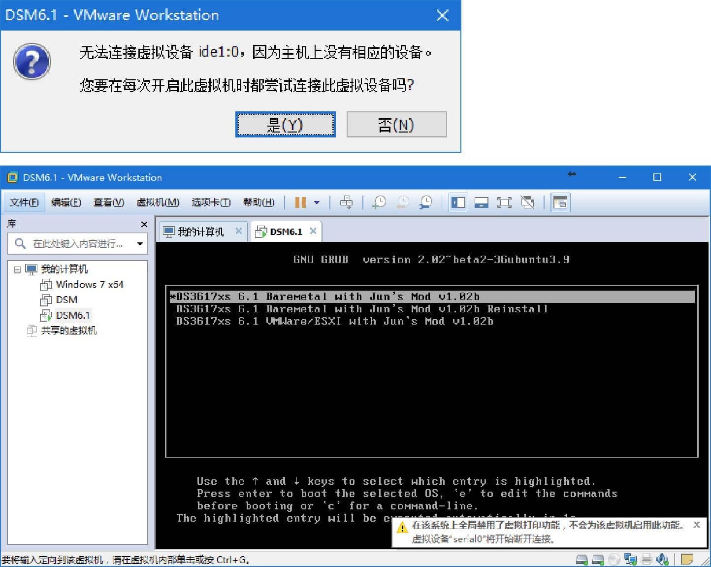 4、启动虚拟机安装黑群晖