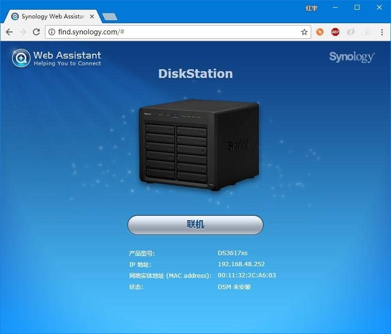 这个时候,你可以在打开浏览器,输入 http://find.synology.com ,如果你的虚拟机网段和主机是同一个网段,使用这个网址是可以直接获取到我们将要安装的群晖的。你也可以使用群晖官方提供的 “群晖助手” 来安装群晖(这个工具很简单,这里不做赘述)