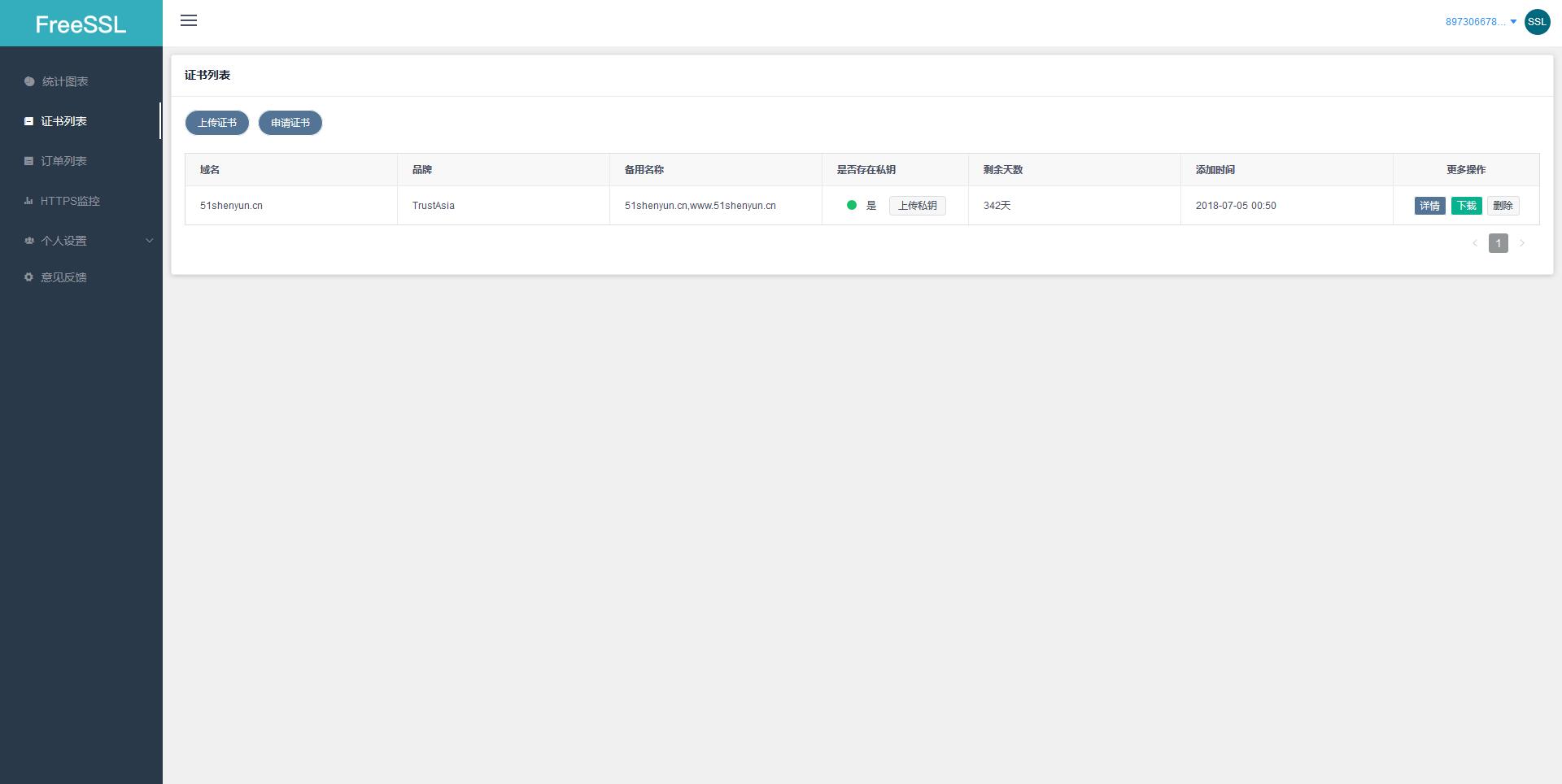 这个网站还有证书管理功能 可以把证书放在网站后台 功能挺方便 需要可以去试试