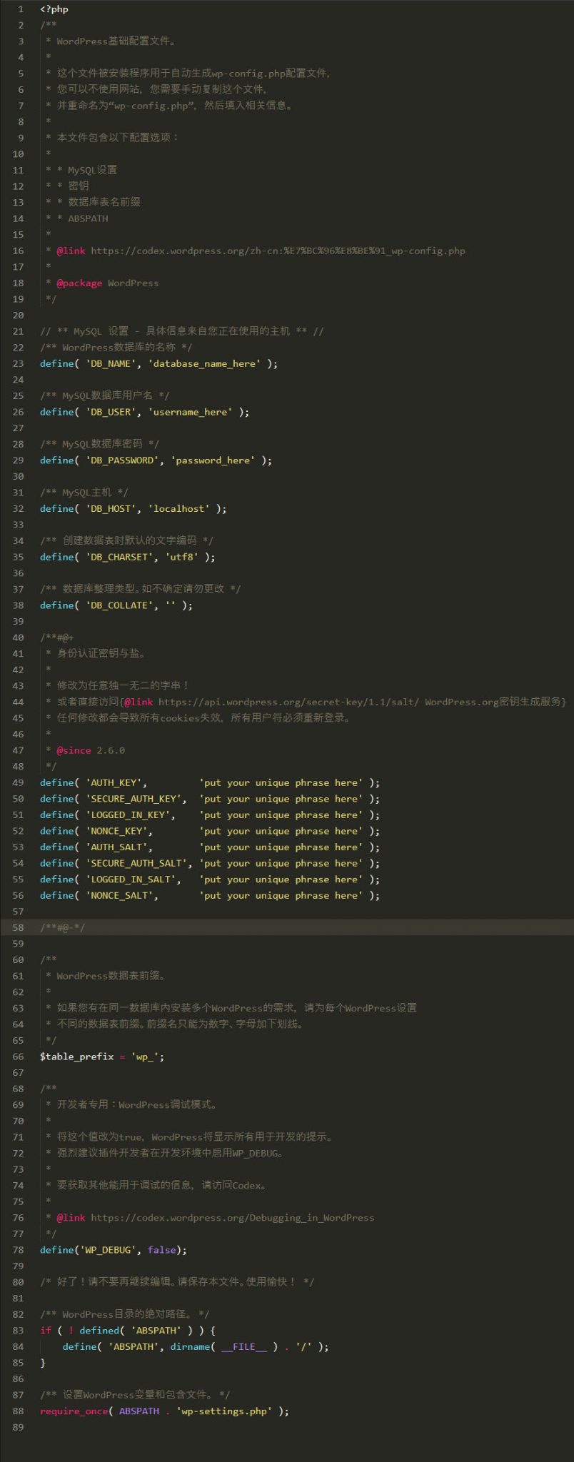 就像我们讨论过的那样,WordPress包含名为wp-config-sample.php的文件,可让新用户了解常规WordPress配置文件的外观。
