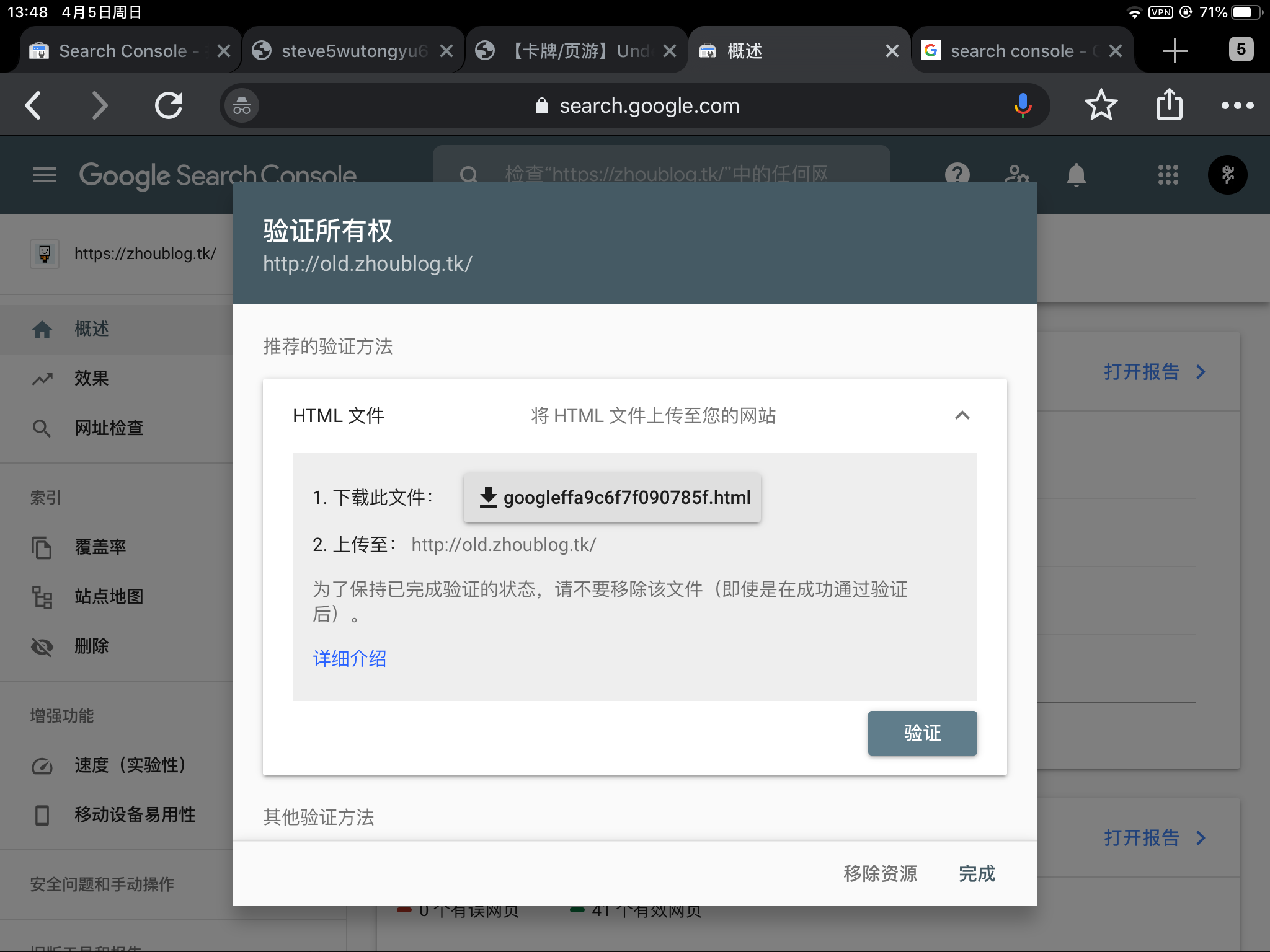接下来就是进行验证了,我用的是推荐的那个html验证,只要将下载下来的html文件放到网站根目录就行了,这里就不做演示了