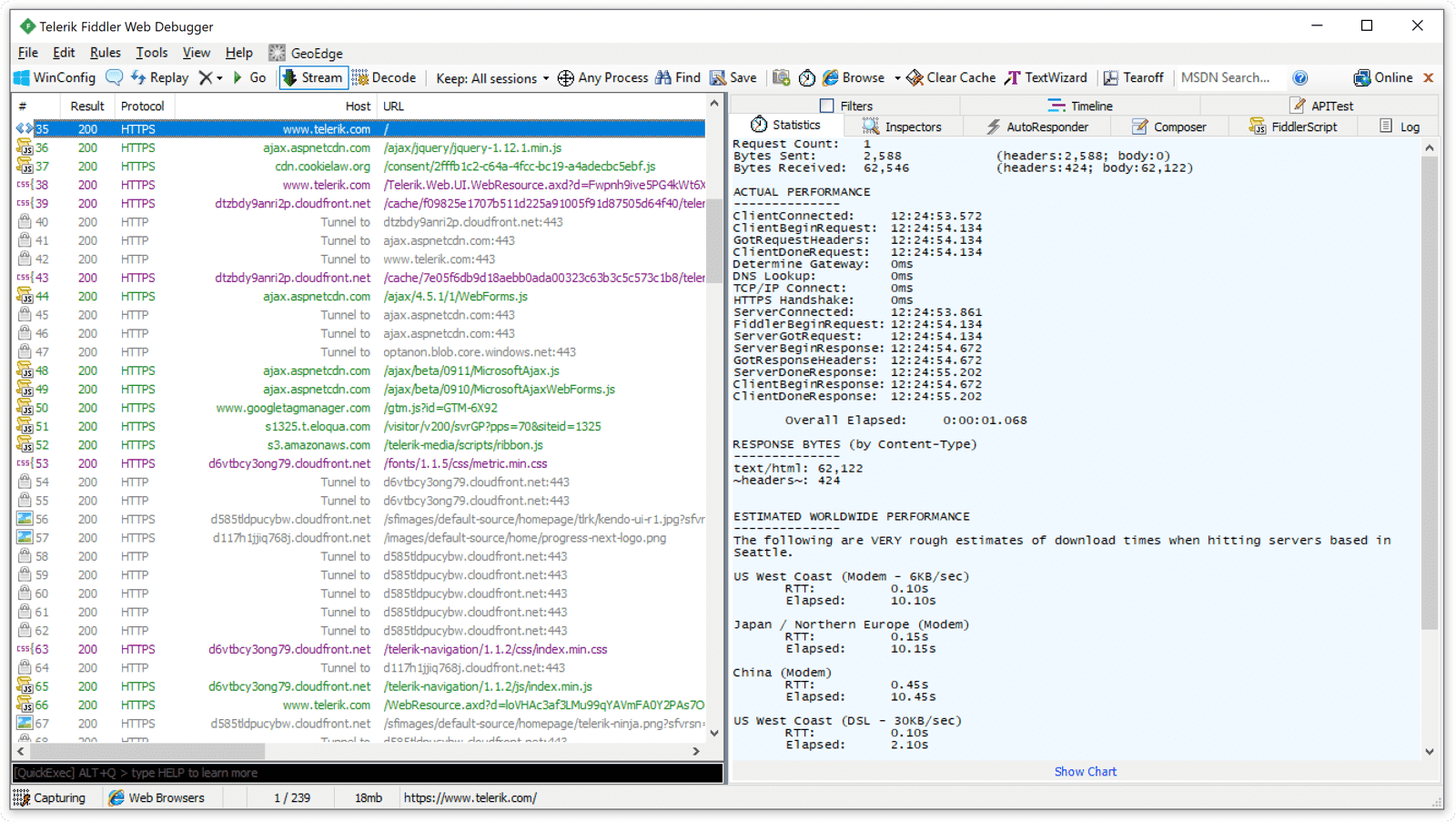 一款微软出品的强大网络抓包工具,它功能强大且个人觉得在GUI体验方面胜于wireshark,有直观的数据包分组分级展现。进程抓包,还有强大的过滤与一键任意窗口抓包功能,很值得一试。遗憾的是它仅支持Windows系列系统,并不支持macOS及Linux。