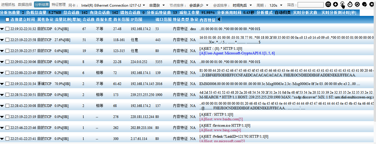 一款开源开放的基于进程抓包、可自学习特征、提供正则表达式识别引擎的智能分析软件。主要应用于应用行为分析、应用特征提取,入侵行为分析、入侵规则提取等领域。支持长时间抓包与存储、支持大文件报文分析。